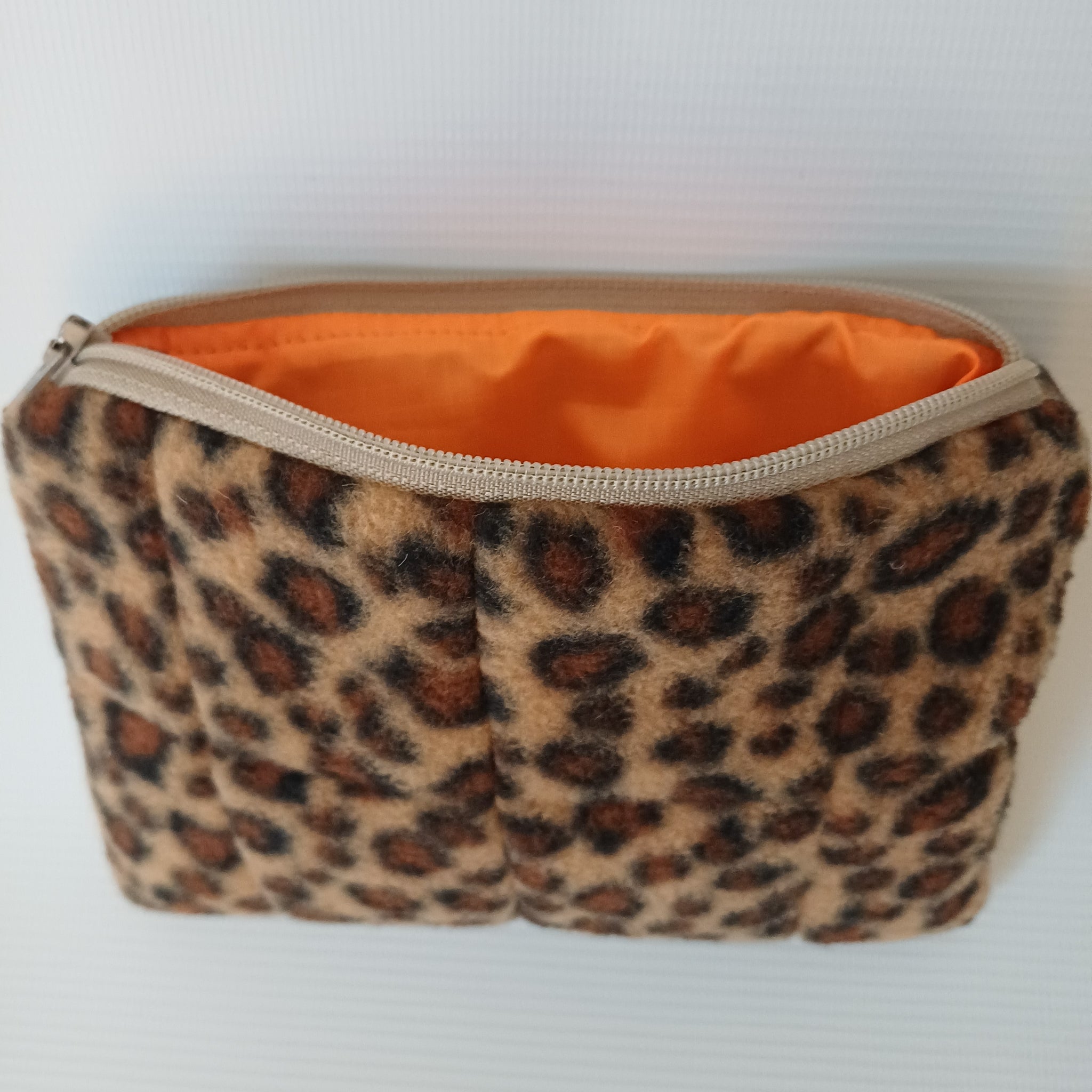 10cm by 15cm purses. Made with a leopard print fleece.