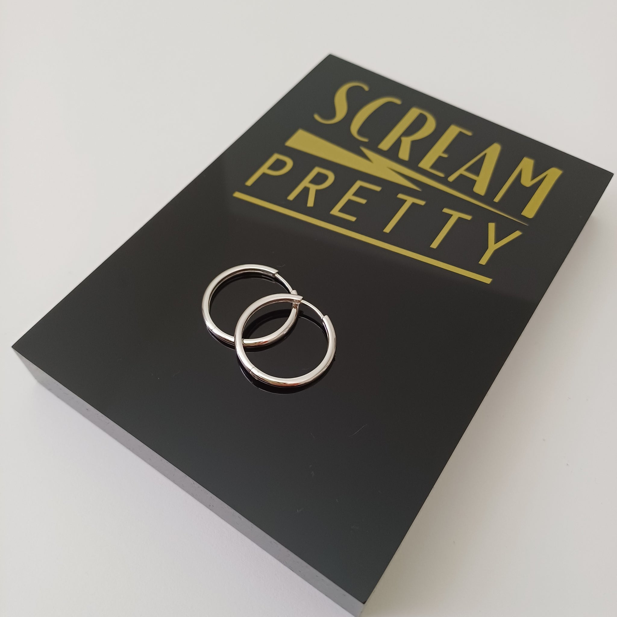 These classic style hoops are crafted from sterling silver and Rhodium plated with a smooth polish.